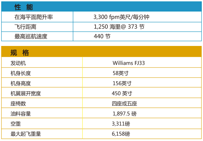 每小时800公里飞行速度,适合飞行训练的个人喷气飞机。经由世界领先的气体力学专家在美国公务机设计制造中心Wichita 设计开发。可扩展的设计平台能搭乘更多乘客,是中国公务航空快速发展的独特商务机会。