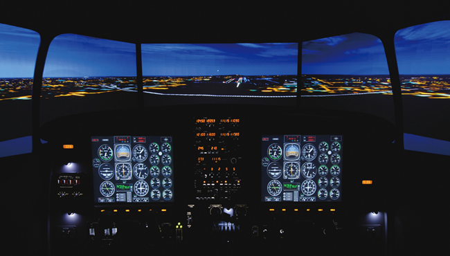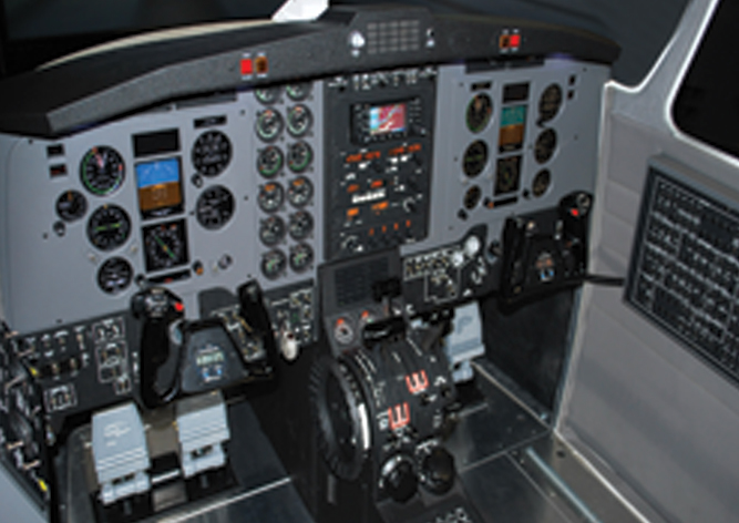 该模拟器为PFC公司生产的MFD(Modular Flight Deck)系列,即模块化飞行模拟器。该模拟器的驾驶舱仿造真实座舱,模拟器的其他部件,从仪表、航空电子仪器、方向盘、油门操控器、脚踏板到视觉效果,都极为逼真,为培训飞行员对飞行器的熟练操作及对外在天候环境的反应能力,提供了一个扎实的飞行训练平台。该模拟器有如下特点: